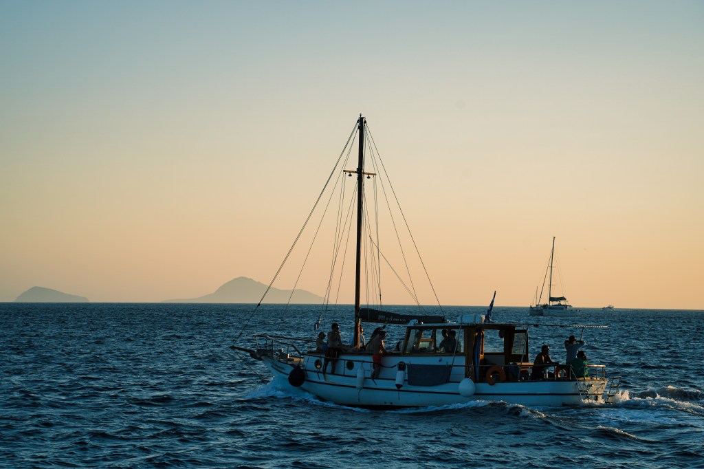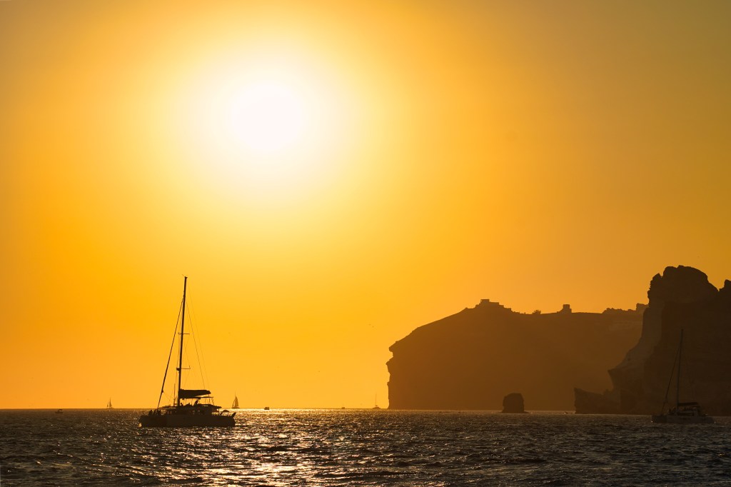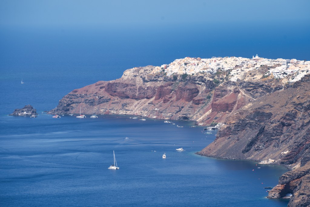 Santorini is a kaleidoscope of colors that truly brings it to life. Picture the blinding white walls of cliffside homes contrasting against the deep cobalt domes of its churches, all set against a backdrop of endless blue sea and sky. The island’s volcanic origin adds even more drama to the palette, with the red and black sands of beaches like Kamari and Perissa standing out against the turquoise waters. Everywhere you look, there’s a burst of color — from the pink bougainvillea draped over doorways to the vibrant fishing boats bobbing in the harbors. Each hue tells a story, blending together in a way that feels both effortlessly natural and deeply intentional.