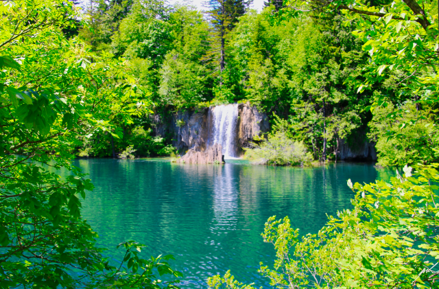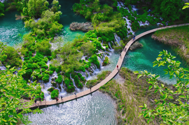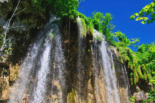 Currently, sixteen lakes are visible at the surface in Plitvice, but the number changes due to natural conditions. The unique feature of these lakes is the natural dams, called travertines, built by a combination of bacteria, algae, and moss. They are susceptible to outside conditions and grow up to one centimeter yearly. The lakes are known for their distinctive colors, from azure to green, grey, or sometimes blue, depending on the light and the organisms living inside. But most famous, of course, are the countless waterfalls, which bind the different lakes together and, at this moment, create a unique natural landscape.