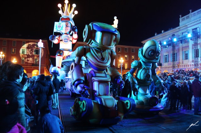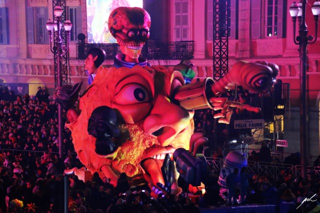 The carnival in Nizza has a long-standing tradition, reaching back many decades. Alongside the carnivals in Venice and Rio de Janeiro, it is one of the most famous parades of this kind (Mardi Gras would be another example). It is a festival of lights and flowers, kitschy music, and many weird creatures roaming the streets. There is a lot of dance and fun, and it ends with the burning of a figure resembling a king – the famous burning of the king. Very french. Also, every year, there is another overreaching theme; this time, it was space and sci-fi.