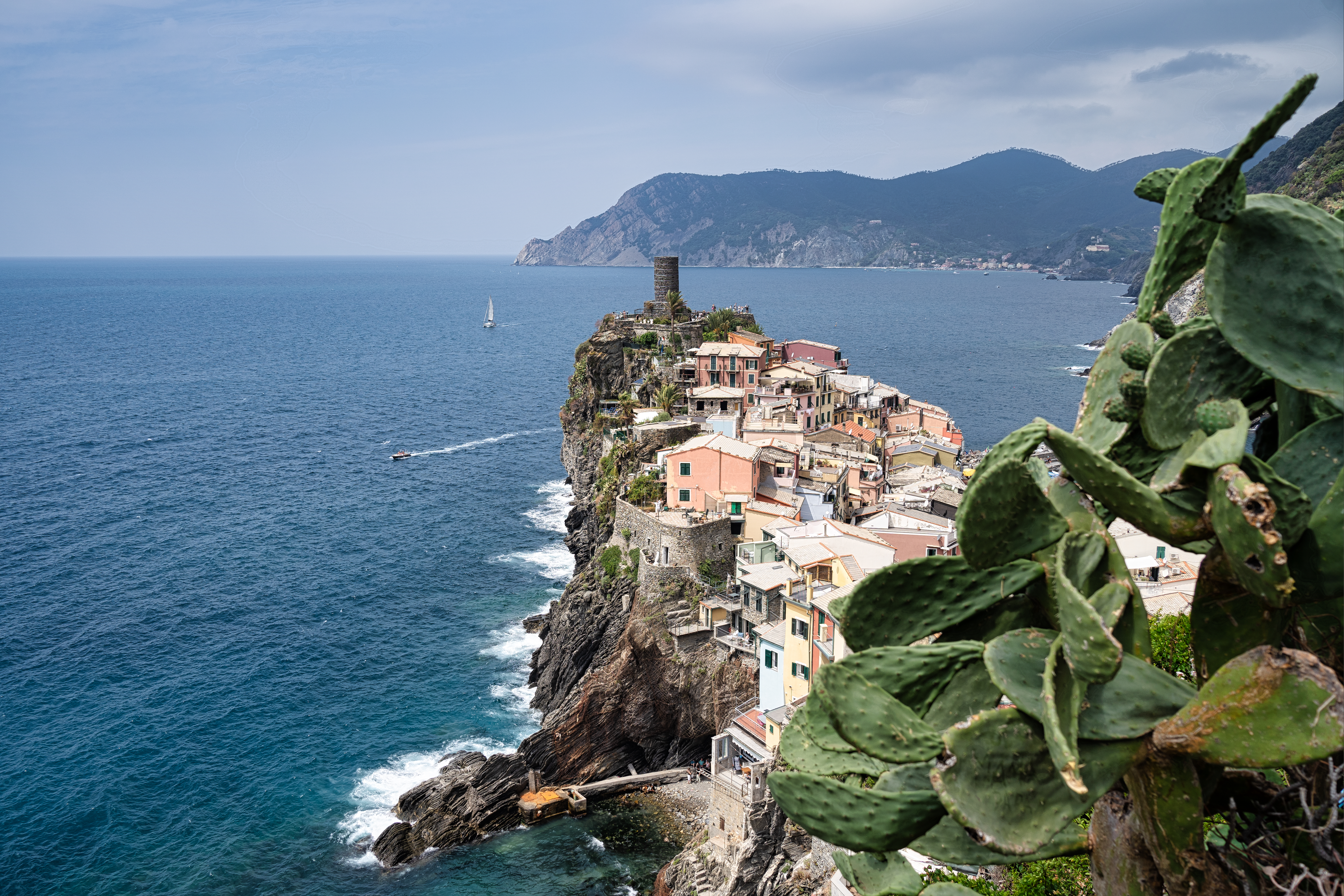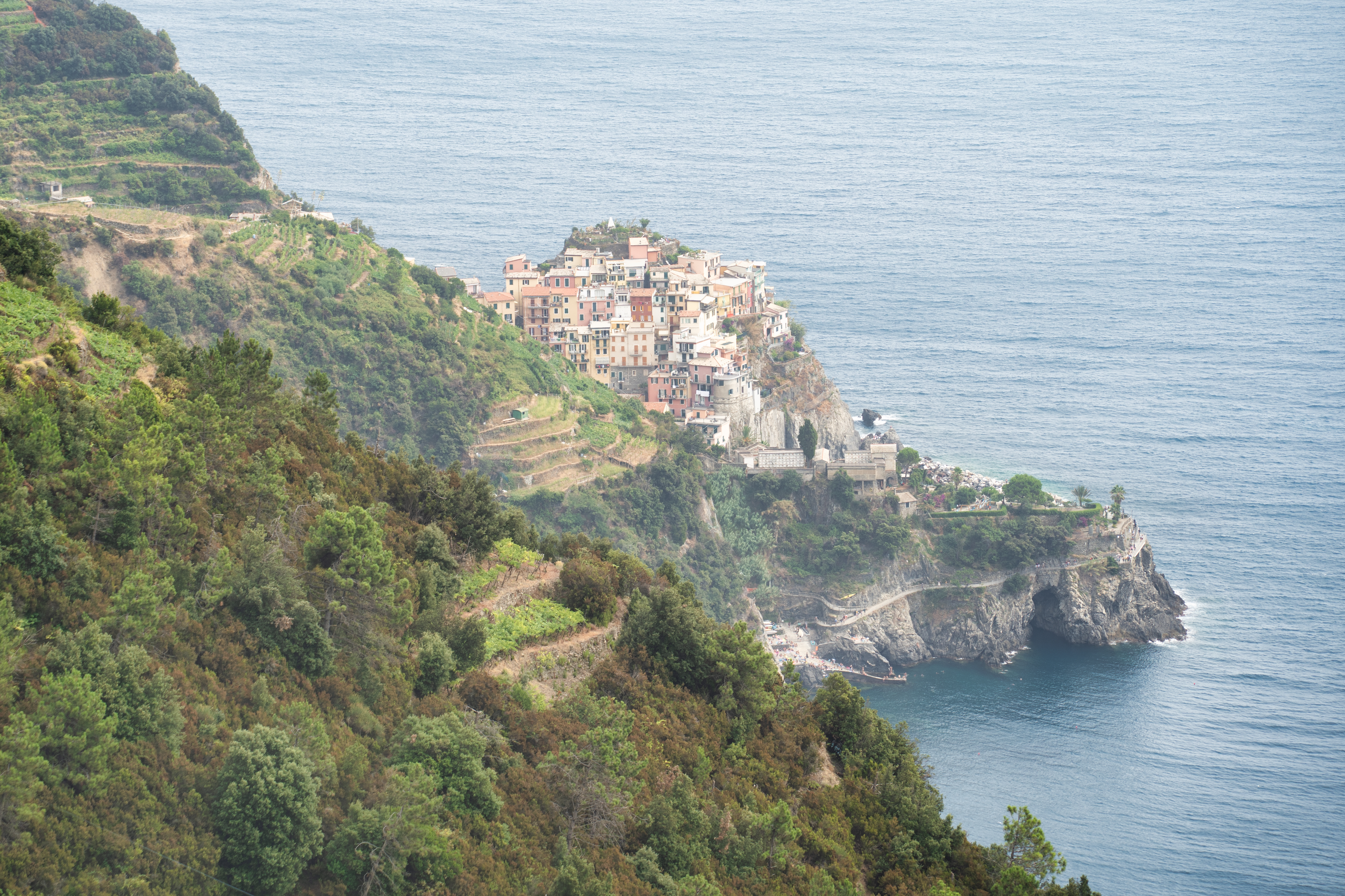 Cinque Terre is a national park in Liguria, a region in the northwest of Italy situated just south of Genova. It is not only a national park but home to five distinct villages, also called “Cinque Terre” – the five villages – by locals and foreigners alike. These places are called Vernazza, Riomaggiore, Monterosso, Corniglia, and Manarola. So what’s so special about them? For a long period of time, they were only reachable from the sea by boat. Nowadays, there is a train line connecting all of them, and the time to go from one to the other is usually just a couple of minutes. Imagine a subway line, but instead of connecting different neighborhoods of one city, you can be in different towns along a beautiful coast in mere minutes. Another possibility to travel between these places is to hike. That’s one of the primary reasons why people like to come to Cinque Terre; they hike from one place to the other and take the train back later on. It’s so incredibly easy!