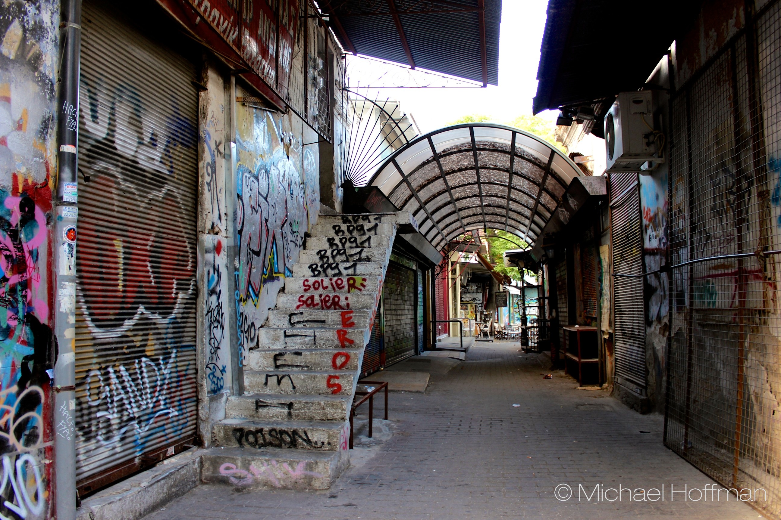 Getting into the Sniper Tower might be tricky, but it’s worth it. From the main square, turn to the left ally and follow it to the end of the building, then go around the corner; right here, some stone blocks should enable you to cross the wall and enter the eerie site. I highly recommend doing it in daylight, first of all, because you can enjoy the beautiful views on the upper floors, secondly and most importantly it’s supposed to be a hotspot for druggies at night. Obviously, there is no police here to take care of you. So be cautious and watch your steps. The place is incredibly well-known for its graffiti art; some pieces can be seen below.